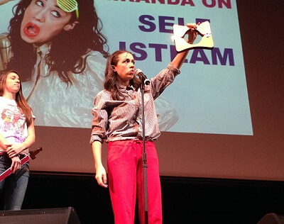 Miranda Sings is a fictional character played by YouTube personality, comedian and actress Colleen Ballinger. Miranda Sings was created in 2008 online and is represented as a misguided, talentless and egotistical woman, used as satire to comment on the state of social media stardom. Miranda has guest-starred with notable talents like Jerry Seinfeld and has been on The Tonight Show Starring Jimmy Fallon. Currently, she is the main character of the Netflix original show Haters Back Off and Ballinger and has taken home both a Teen Choice and a Streamy Award for her Miranda Sings videos. Be in her live audience by buying